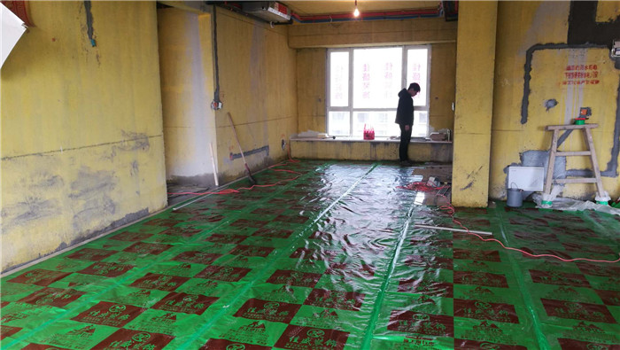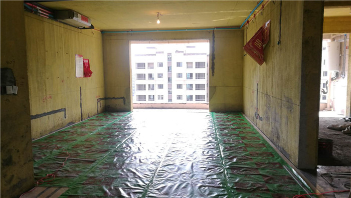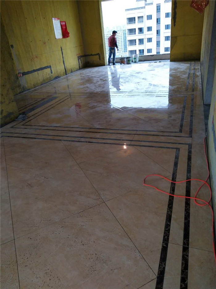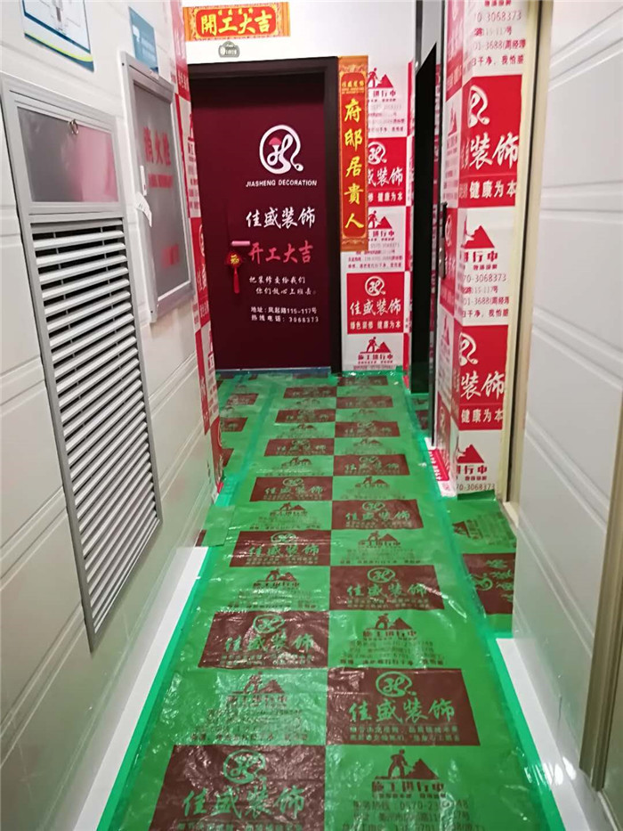 地磚鋪設完畢,全面覆蓋地磚保護膜